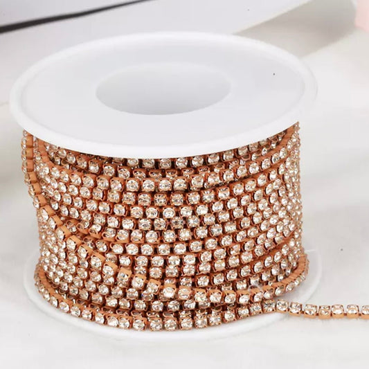 1 Yard SS6 Champagne Crystal Rose Gold Metal Chain Rhinestone Banding