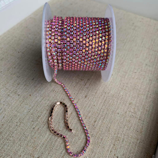 1 Yard SS6 Opal, Metal Chain Rhinestone Banding - See Color Options