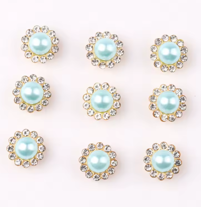 12mm Pearl Flower, Gold Base, Sew On, Rhinestone - See Color Options