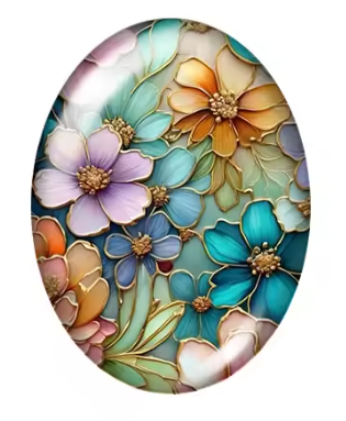 18*25mm Oval Stained Glass Flower, Glass- See Color Options