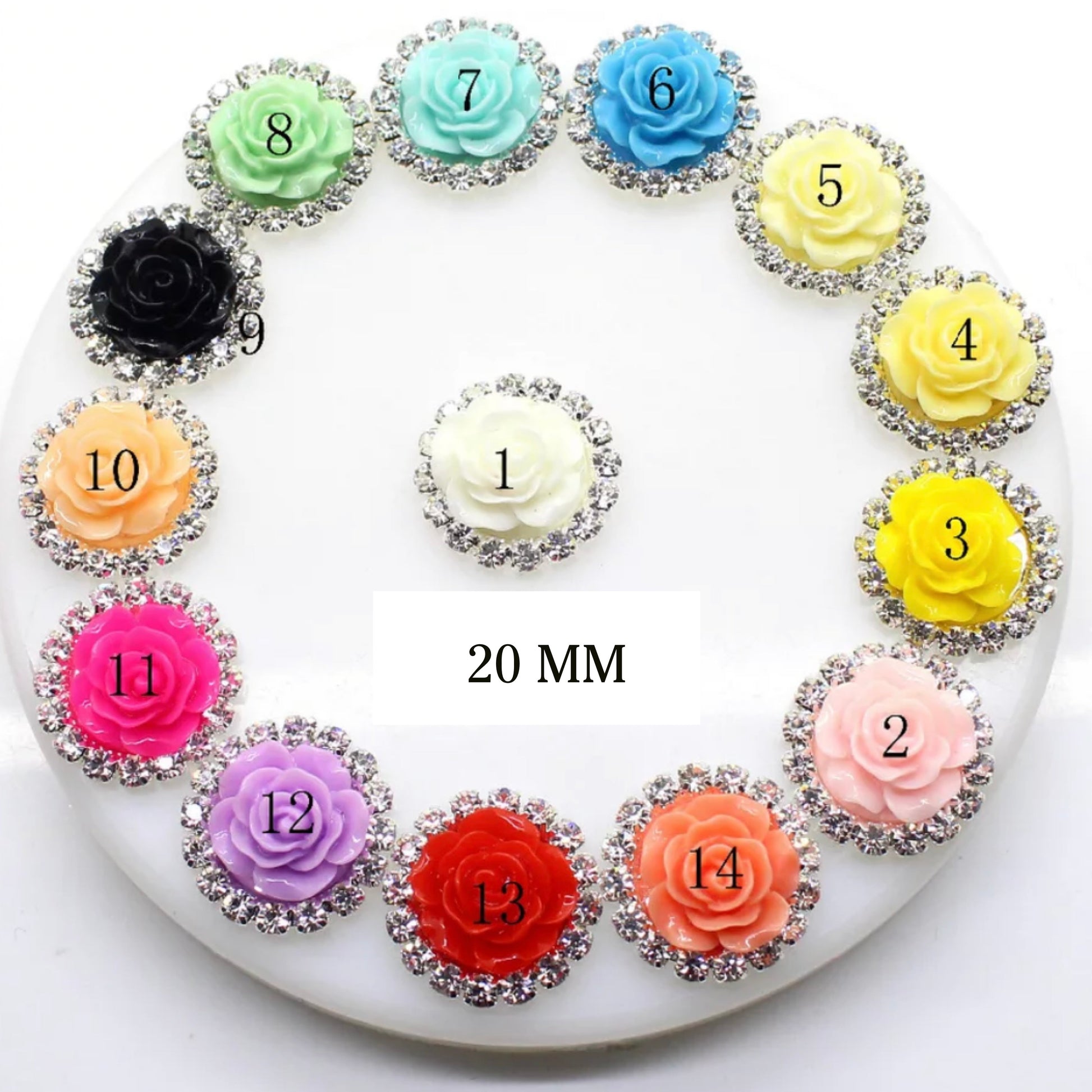 Rosa de resina de 20 mm con diamantes de imitación (ver opciones de color)