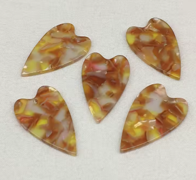 Corazones acrílicos de mezcla de mármol de 23 x 39 mm, con un orificio para coser, gemas acrílicas