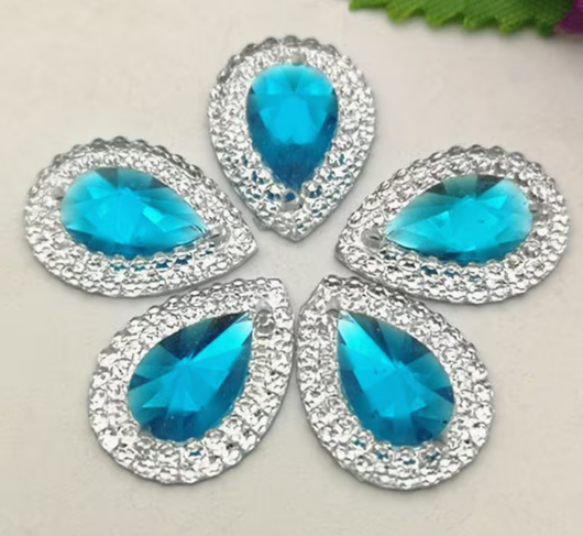 18*13 Resin Teardrop with Gem Styled Edge. Sew-on - See Color Options