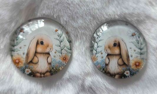 25mm Bunny Rabbit Cabochon, Glass, Glue-on - See Color Options